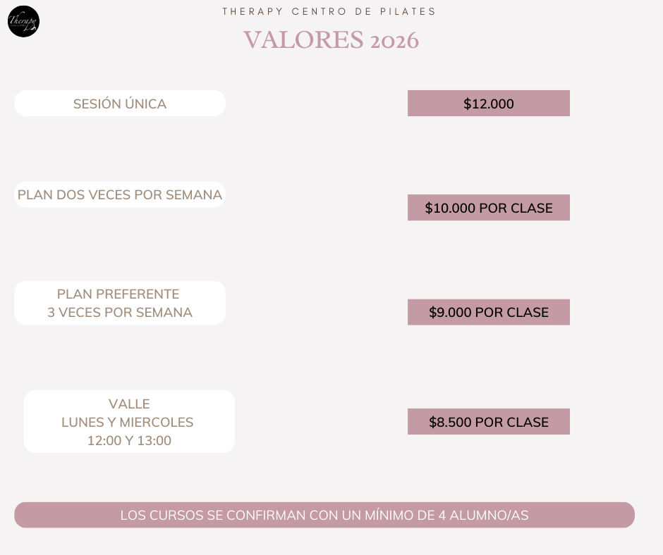 En Therapy Centro de Pilates, llevamos más de 12 años acompañando a nuestras alumnas y alumnos en su camino hacia el bienestar, la fuerza y la movilidad consciente. Ubicadas en la comuna de Huechuraba, nos enorgullece ofrecer un espacio cercano, seguro y profesional donde cada clase es personalizada, con un máximo de 7 alumnas/os por sesión, para asegurar atención individual y seguimiento constante.